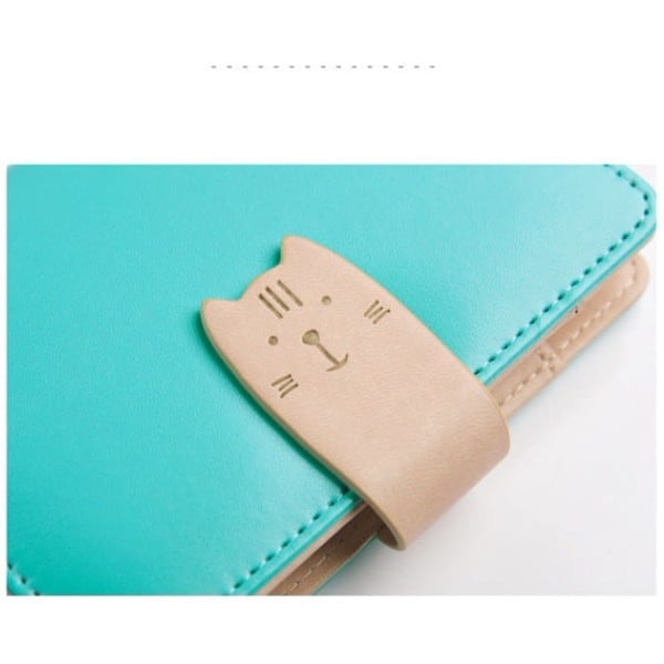 A pihepuha pasztelszínű bőrboritás és a ránk mosolygó cicafej annyira különlegessé és cukivá teszi ezt a noteszt, hogy azonnal a táskánkba akarjuk tudni.